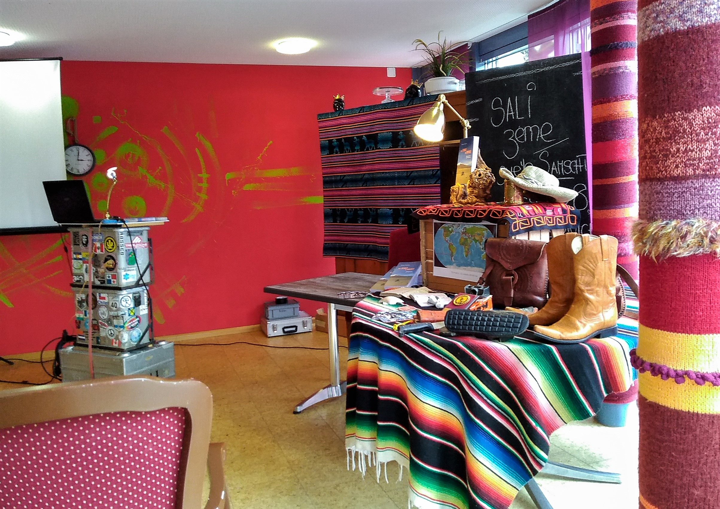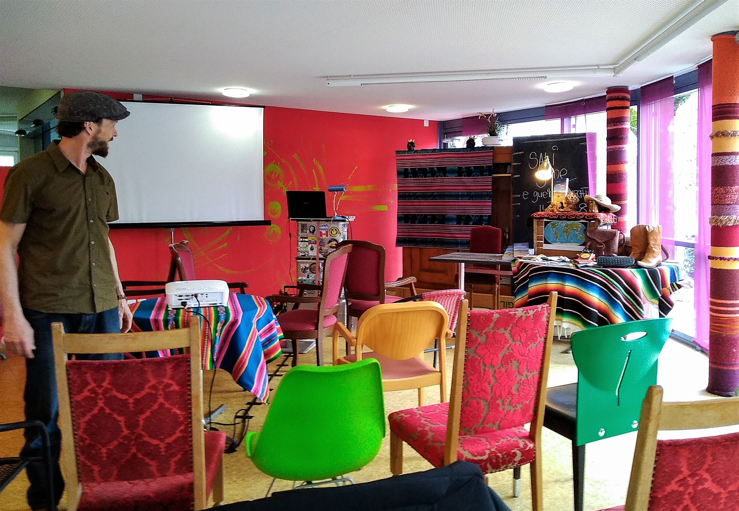 Nebst Motorrad Fans treffen sich hier zwischen bunt gestrickten Säulen die verschiedensten Zeitgenossen mit ihren Geschichten.